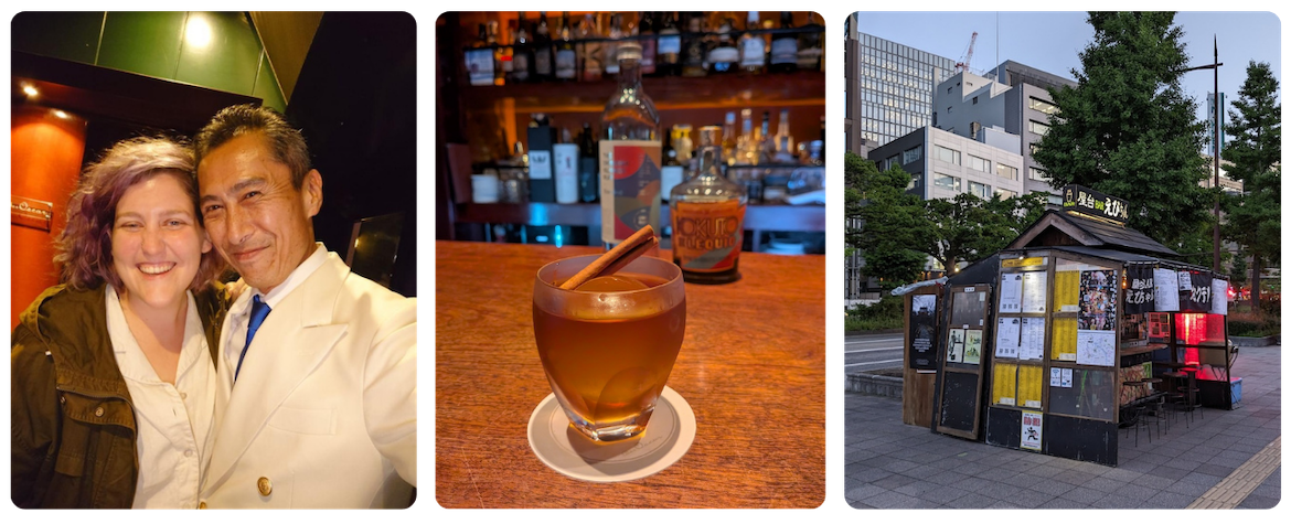 Bar Oscar: An “authentic bar” in all the best ways—dark and cozy, quiet murmuring over light jazz, and a casual but classy feel. The owner/bartender is something of a legend, and it’s easy to see why when you see the precision with which he serves up original cocktails based on your tastes. (Also, if you go to this bar, you have to send me a selfie with Nagatomo-san. Those are just the rules. 💁🏻♀️)